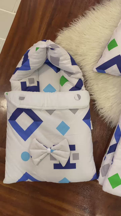 Create a cozy and secure sleeping space for your newborn with this adorable Baby 8 Pieces Bed Set – Box Print. Made from soft, breathable cotton fabric, this complete bedding set provides comfort, warmth, and protection for your baby.