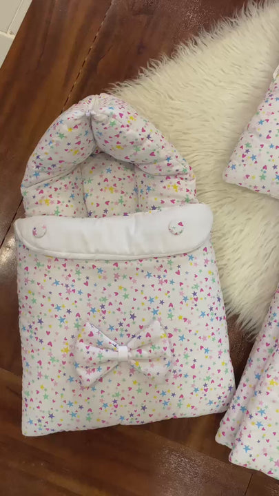 Create a safe, cozy, and comfortable sleeping space for your little one with the Baby 8 Pieces Bed Set – Printed Multi Stars. Made from soft, breathable cotton fabric, this complete bedding set is specially designed for newborns to ensure comfort, support, and protection during sleep.