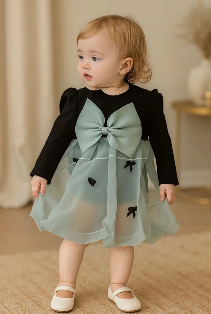 The adorable bow detail adds a touch of cuteness, making it a perfect choice for birthdays, parties, playdates, or casual wear. Its full sleeves provide comfort and protection in every season.
